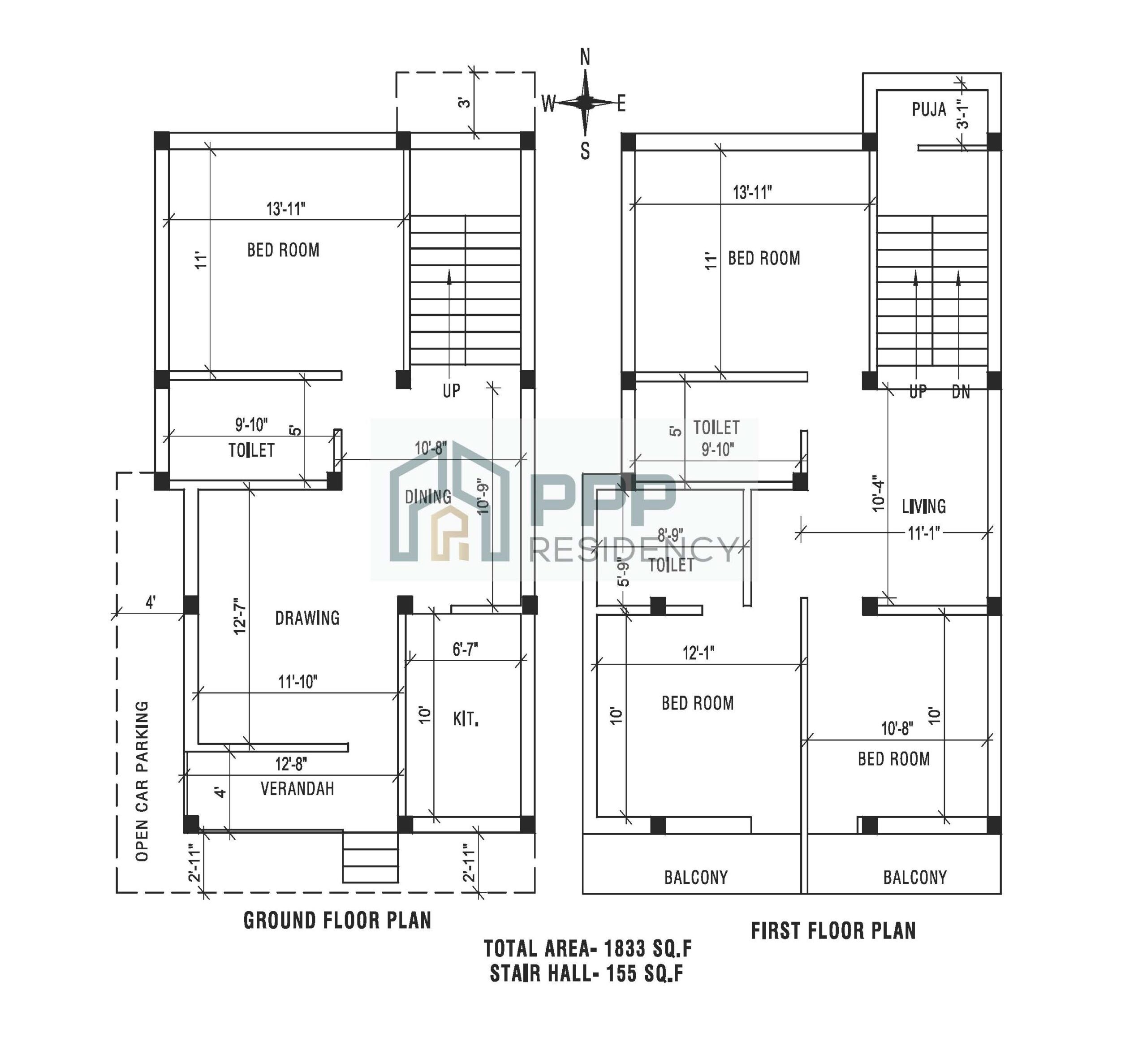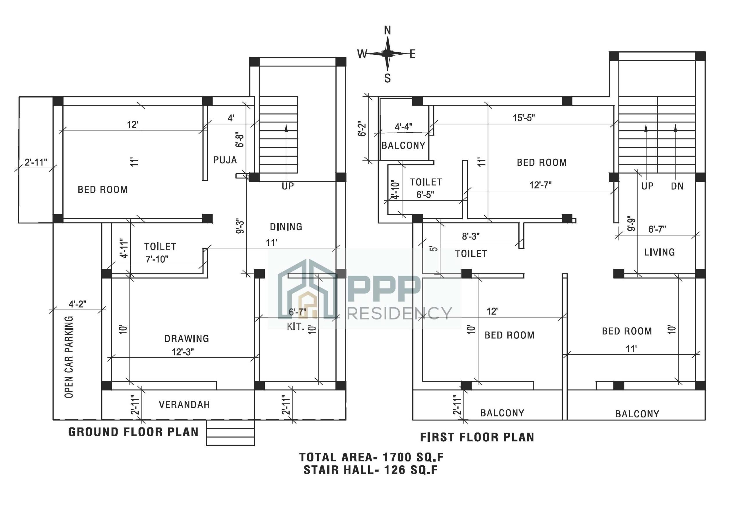 ● Vitrified Flooring -4*4 ● Antiskid Tiles in all Toilets, Attached Balconies. ● Marble in Staircase.